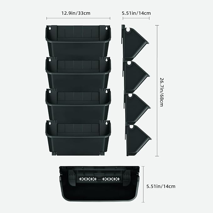 Self-Watering Wall-Mounted Planter Indoor/Outdoor Decor, Wall Planter Indoor Vertical Living Green PlantWall with 4 Pots Easy Installation 12.9''x5.5'' x26.7''