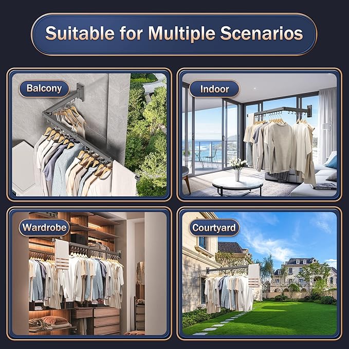 - (Clothes Drying Rack with 6 mounting holes)_Laundry Drying Rack,Compact Clothes Dryer, Folding Laundry Drying Rack, Wall-Mounted Garment Hanger, Retractable Clothes Rack, Collapsible Hanging Organizer