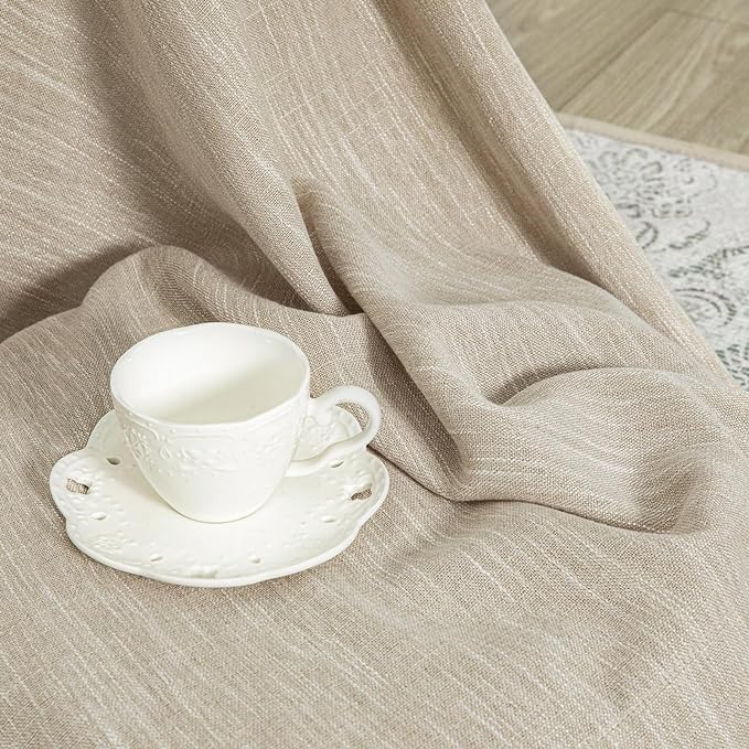 - Unique Material: The curtains adopt the cotton polyester blend fabric, 25% cotton with 75% polyester. The cotton makes them look and feel soft while the polyester makes them drape so nicely and keeps them largely wrinkle-free.