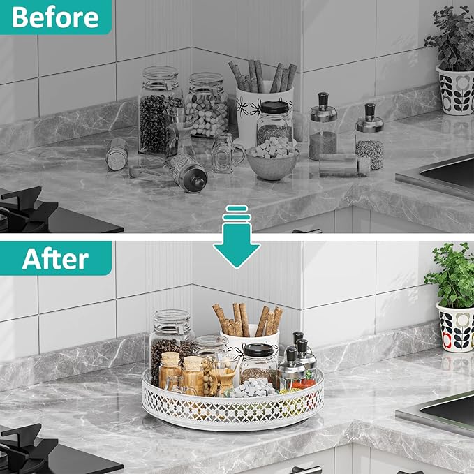 - Large Space Organizer:This lazy susan organizer measures 11 inch,providing more storage capacity in your deep cabinets,upper shelves and cluttered corner countertop , Making the most use of the limited space in your home to keep things neat and organized.