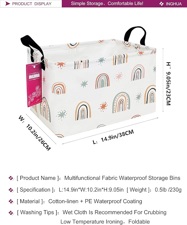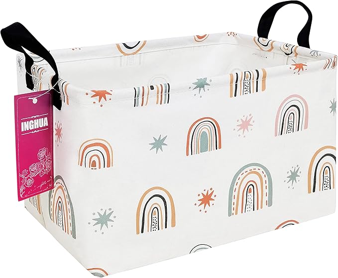 Rectangular Storage Basket Fabric Organizer Bin for Toys,Books,Clothes,Gifts,Pets-Perfect for Home,Office,Nursery,Dorm,Shelf(Rec-Star Rainbow )