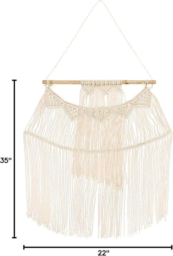 Mark&Day Wall Art, Meiningen Global Farmhouse Beige Macrame Tapestry Wall Hanging for Living Room, Bedroom, Office or Kitchen (35"H x 22"W)