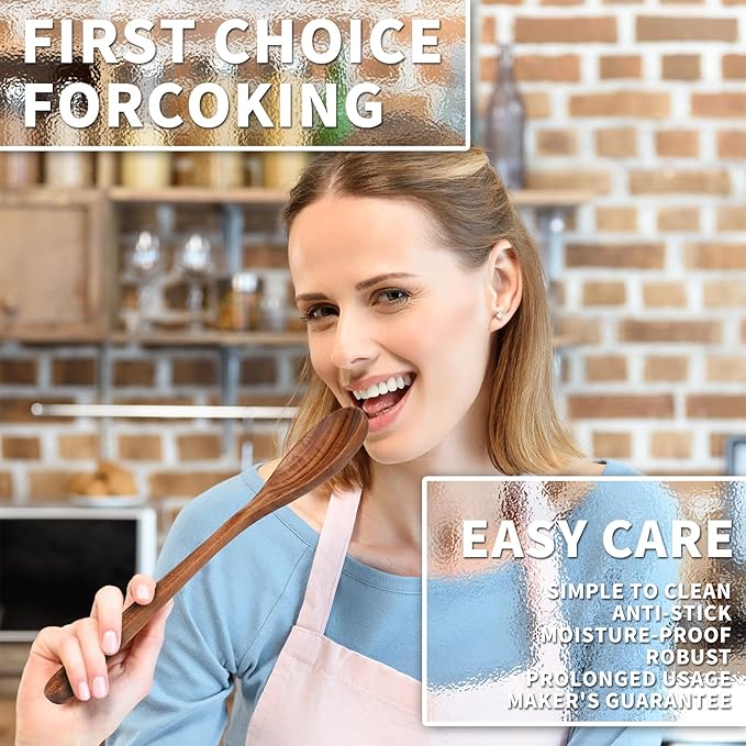 - NATURAL TEAK WOOD: Crafted from solid teak wood, our utensil set is 100% handmade and eco-friendly. It's durable and crack-free, unlike silicone or bamboo alternatives. Note: Natural wood utensils may have slight color variations.