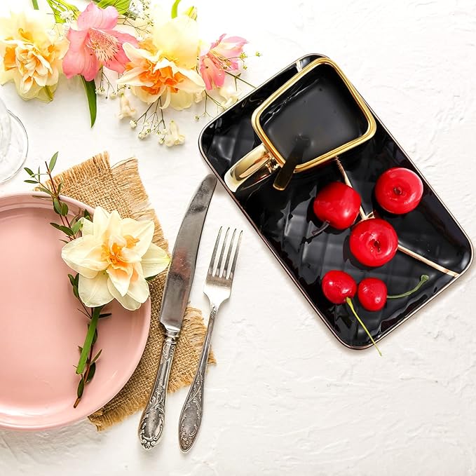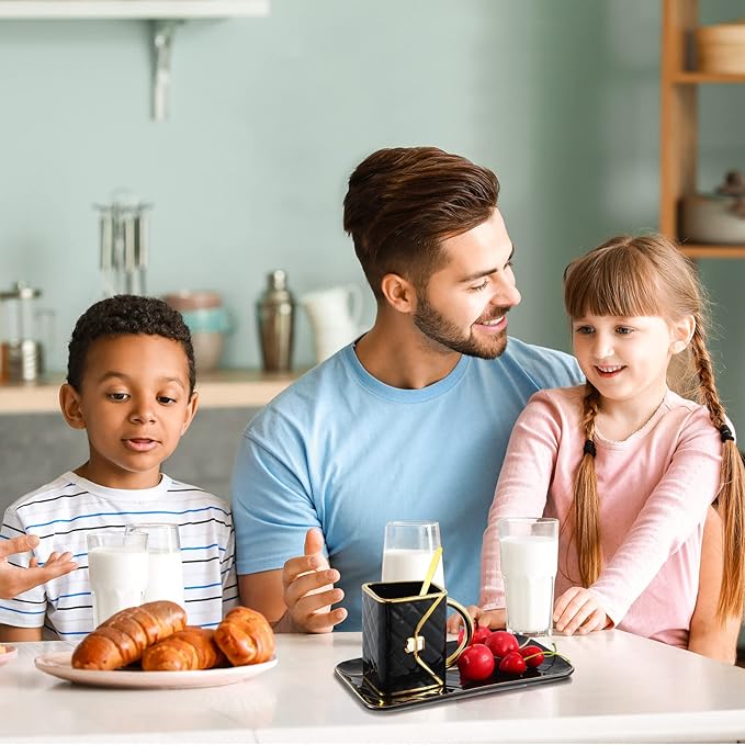 - Attractive and Elegant: the ceramic aesthetic coffee mug with saucer is characterized by handbag shapes and hand painted golden edges, and the color combination of black and gold makes it more beautiful and graceful, which can bring both decorative and practical functions