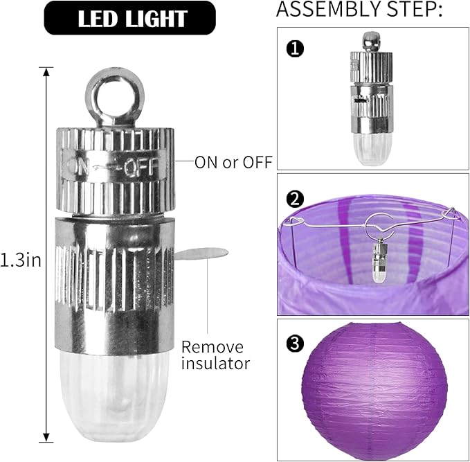 - PAPER LANTERN SET INCLUDED- purple and gold party decorations set including 6 pieces of 10 inch paper lanterns, 6 pieces of 12 inch paper lanterns, 12 pieces of battery operated mini LED lights, set comes in purple lavender and gold colors