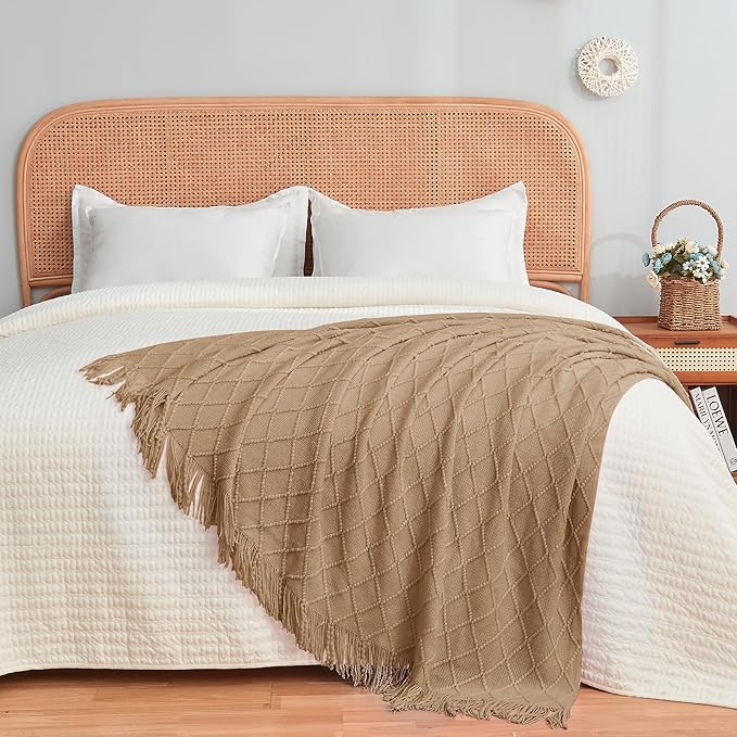 - 【FANTASTICAL COMBINATION】: Decorative blankets and throws ,nice raised diamond shape knit design and well-arranged fringes. It's couldn't be better to decorate your home for Christmas, Thanksgiving, and other holidays. A good cozy blanket is a combination of the right price, satisfactory adaptability, and lovely design.