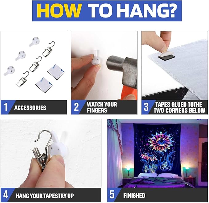 - 🌟 Brighten Up Your Space: ADDWel blacklight tapestry adds a vibrant and glowing touch to any room. ADDWel tapestry is printed with a UV-reactive ink that creates a neon-like effect under blacklight. Perfect for parties, raves, and other events that require a fun and unique atmosphere.