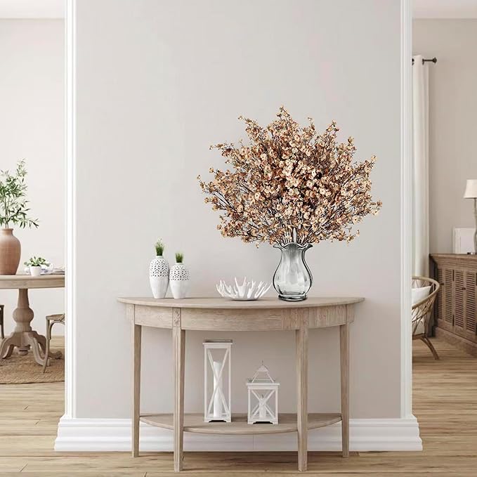 Sggvecsy 15 Pcs Babys Breath Artificial Flowers Gypsophila Bouquets Bulk Real Touch Fake Silk Flowers for Home DIY Floral Arrangement Table Centerpiece Fall Thanksgiving Autumn Decoration (Skin Brown)