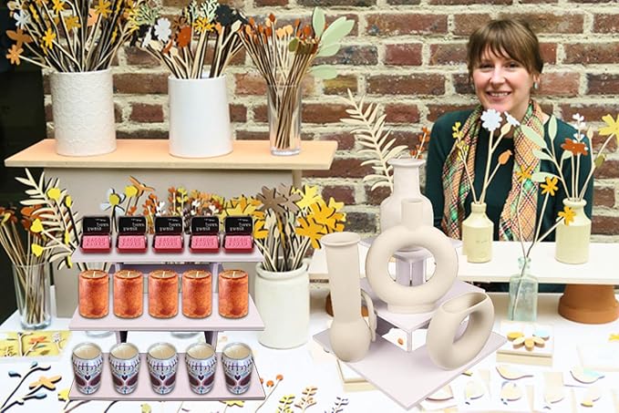 - STURDY AND DURABLE: This tiered display stand is made of 0.4 inch thick high quality polyvinyl chloride material for extra durability and safety, the bottom uses reinforced crossbars for added strength and stability and can hold up to 35 lbs, the craft fair rack has a smooth and beautiful surface with a gorgeous and stylish appearance it is one of the most practical craft fair display racks for craft shows.