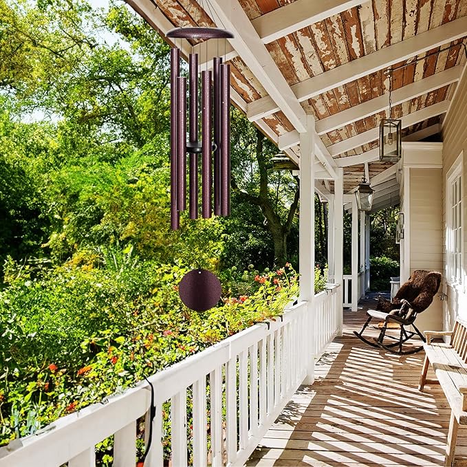 - Metal Wind Chimes: Crafted entirely from aluminum, including the six tubes, the hook, the top part, and the wind chime pendulum, our wind chimes feature a durable anodized bronze finish. The thick tubing wall creates a longer-lasting deep tone, and each tube is precision-tuned to a pentatonic scale.