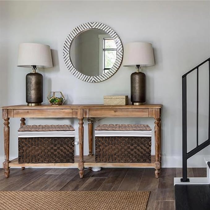 - [Washable Lining Bag] The included cotton lining bag is easily washable, ensuring the cleanliness of your stored items. This lining bag is securely fixed on the wicker basket with lid using two ropes, providing added stability and convenience