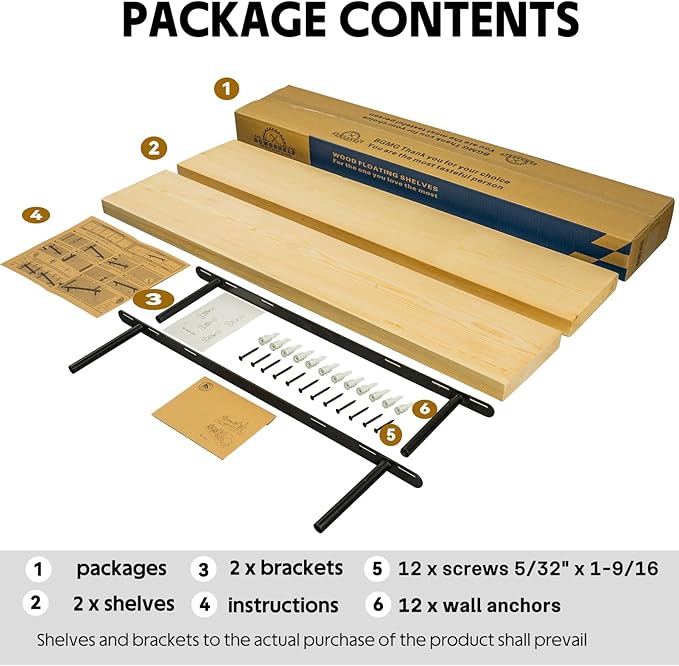 - EASY TO INSTALL: These floating shelves come with stainless steel galvanized invisible brackets, toggle bolts for drywall, and simple instructions to help you install them. These wall shelves are easy to assemble, requiring only two boards and the necessary screws and hardware. We also provide detailed instructions for quick and easy assembly!