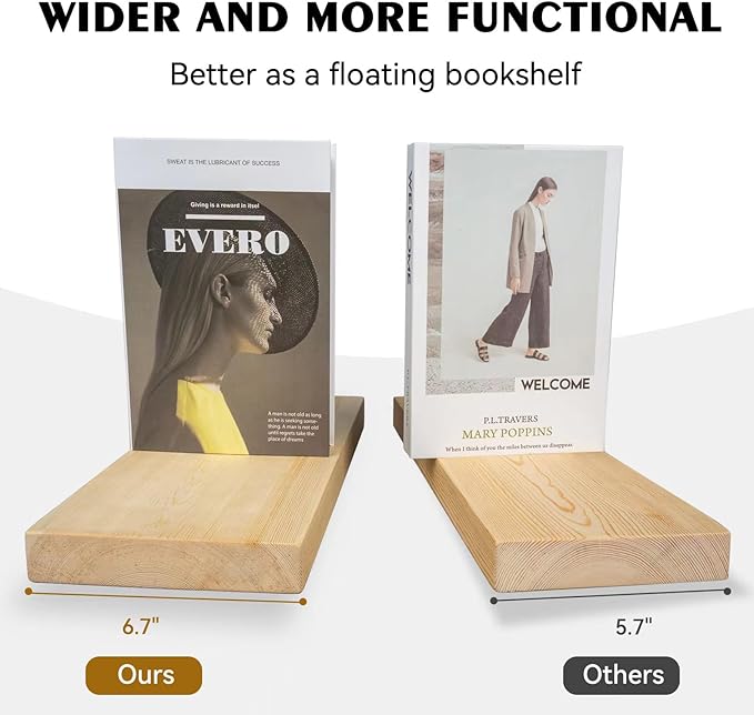 - PERFECT SIZE: Each floating shelf is 6.7" deep, which means they can hold most books without taking up too much space. It makes full use of empty walls and makes the room look bigger and neater.