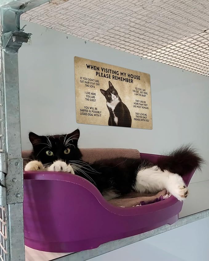 ALKB Funny Tuxedo Cat-Themed Sign 8x12 Inch - Visitor’s Guide to Interacting with Cats - Gift for Cat Lovers’ Home Decor