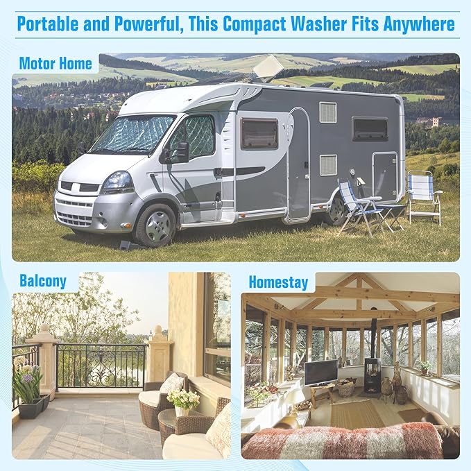 - ✅【Mini&portable】The compact design makes this portable mini laundry machine for apartment light in weight, easy to carry, suitable for use in places with limited space, such as trailers, apartments, dormitories, RVs, etc. And drainage pipes can make it easy for you to drain dirty water.