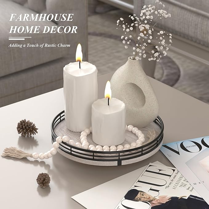 - 𝐏𝐑𝐄𝐌𝐈𝐔𝐌 𝐌𝐀𝐓𝐄𝐑𝐈𝐀𝐋: Our farmhouse lazy Susan made of natural ash wood veneer, sturdy, durable, and beautiful in texture. It is known for its durability, strength, and aesthetic, as well as it can handle heavy use and resist wear and tear. Widely used as coffee table decor, kitchen decor, centerpiece table decortations.