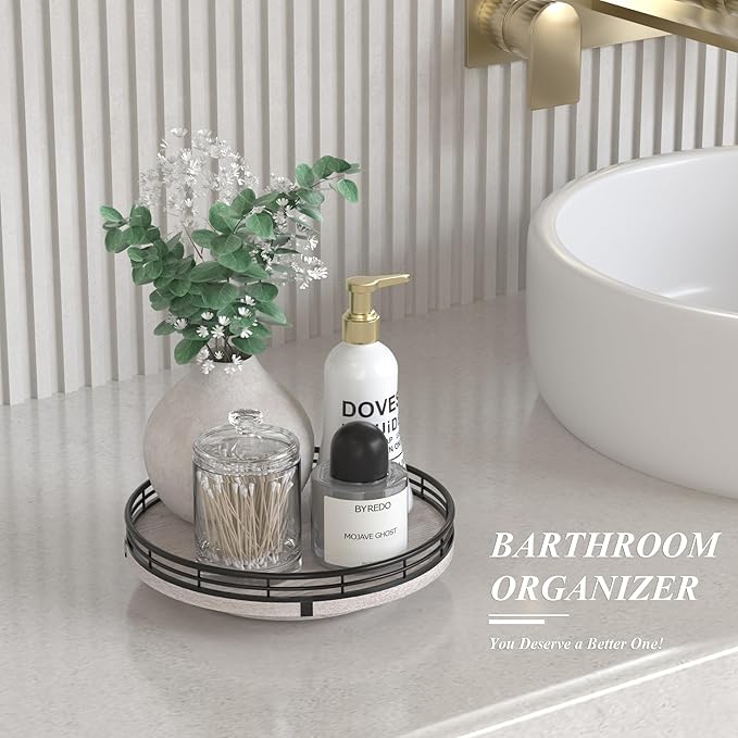 - 𝐕𝐄𝐑𝐒𝐀𝐓𝐈𝐋𝐄 𝐔𝐒𝐄: This lazy susan is enough to be used nearly anywhere, perfect in the bathroom, bedroom, laundry room, office, etc. Keep your bathroom counter organized with this bathroom tray for toiletries, lotion, washcloth, cotton swabs, soap and scrubber. Using a bathroom vanity tray to keep all your daily skin care and makeup. On the bedroom counter, ideal to organize perfumes. Good idea for the office desk and craft room to organize. Keep your coffee stuff perfect at your coffee station.