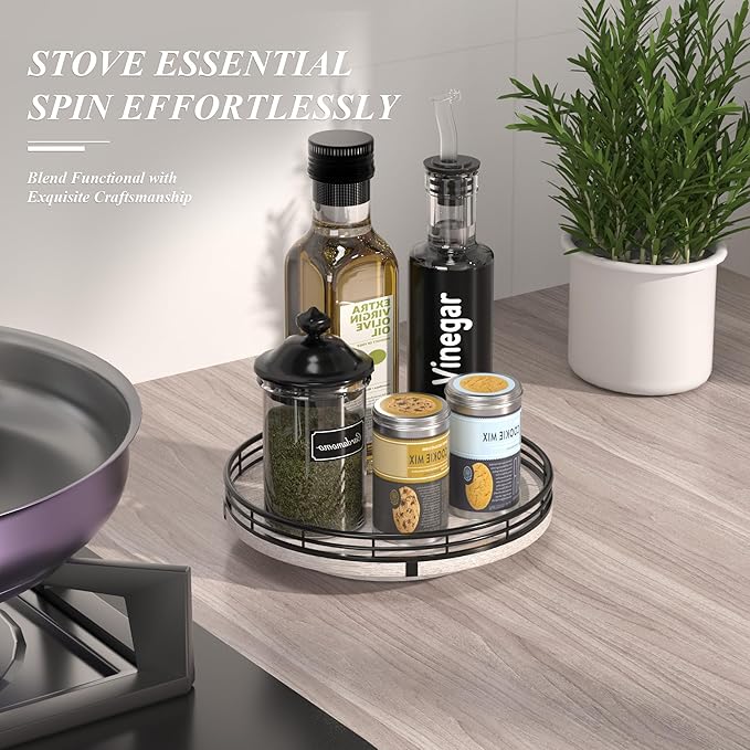 - 𝟑𝟔𝟎°𝐑𝐎𝐓𝐀𝐓𝐈𝐍𝐆: The base is made of solid wood, and the spinning mechanism is made of steel ball bearings, which are well-built and allow for 360°smooth spinning. This Lazy Susan organizer is very attractive and very easy to use to keep your spices, condiments, and more organized and accessible.