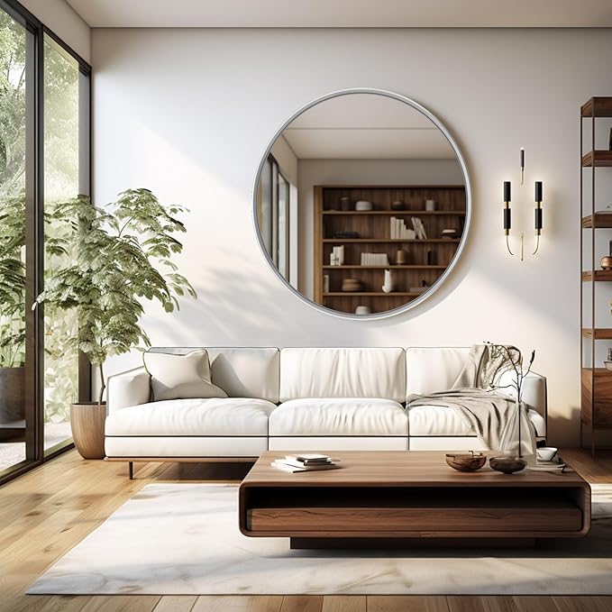 - High-quality Aluminum Alloy οΌOur 30-inch silver round mirror is crafted with durable aluminum alloy combined with an oxidation process. Its minimalist design and classic matte texture perfectly complement any room and match your home decor