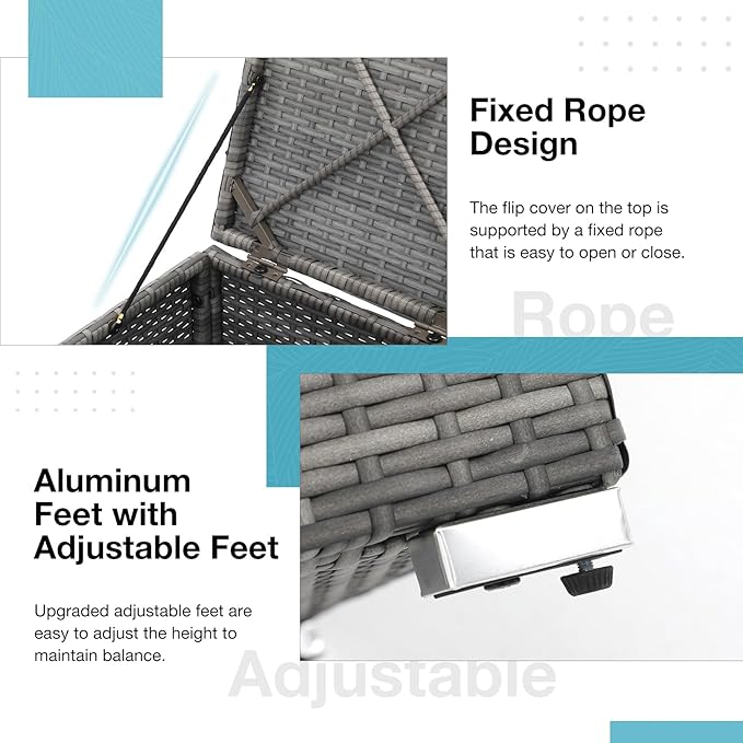 - [Lightweight & Build-in Handle Design]: Featuring a powder-coated steel frame, UV, and all-weather resistant PE resin rattan wicker, this wicker ottoman set of 2 is designed to ensure a long service life. Distinctive built-in hollow handle design makes it easy to be carried anywhere you like. Upgraded aluminum feet with adjustable levelers make it easy to adjust the height to maintain balance.