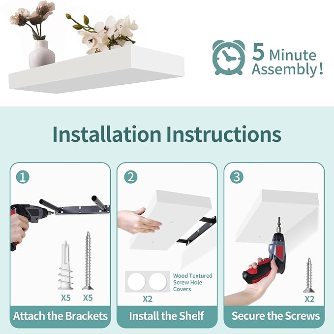 - Effortless Wall Mounting: Transform your walls into functional art spaces effortlessly. Designed for easy installation, these floating shelves come with step-by-step instructions. Enjoy a hassle-free installation process s that lets you start organizing quickly.