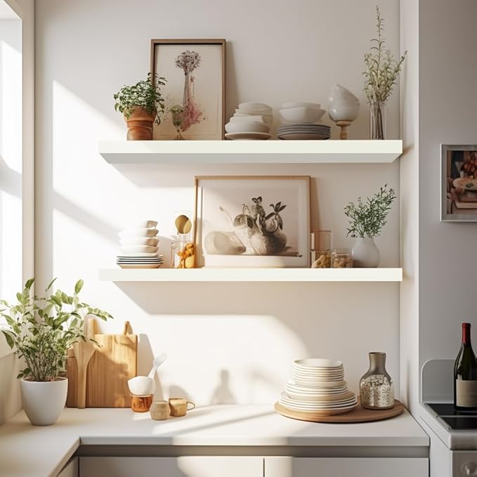 - Space-Saving Solution: With each floating shelf measuring 24W x 9.25D x 1.5H inches each, you get optimal space utilization without sacrificing style. These shelves are perfect for showcasing your favorite decor items while decluttering your space.