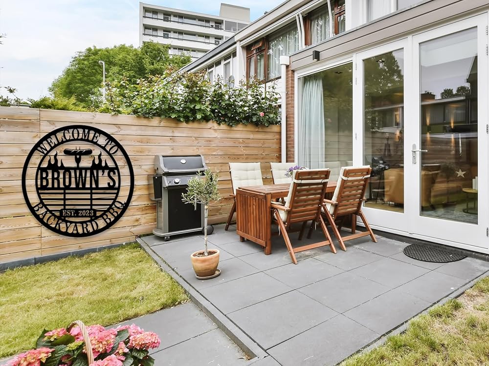 Personalized BBQ Grill Name Sign Custom Grill Sign Outdoor Kitchen Decor Grill Gifts for Dad Backyard BBQ Metal Sign BBQ Grill Sign Barbecue Outdoor Man Cave Decor