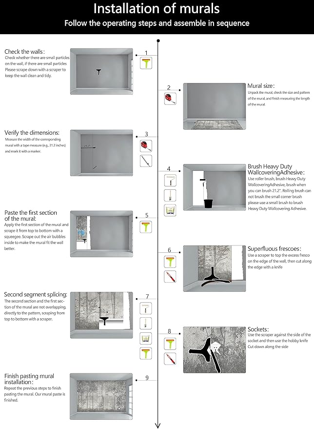 - Warm tip: This mural is not peel and stick, you need to buy your own glue, it is recommended to use Heavy Duty Wallcovering Adhesive.