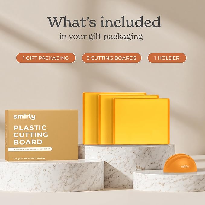 - Confident, Heavy-Duty: Tackle any prep task with Smirly's plastic cutting boards! Made from premium, non-porous, food-grade polypropylene, these chopping boards resist odors and stubborn stains. Experience lasting strength and safety in one indispensable kitchen essential
