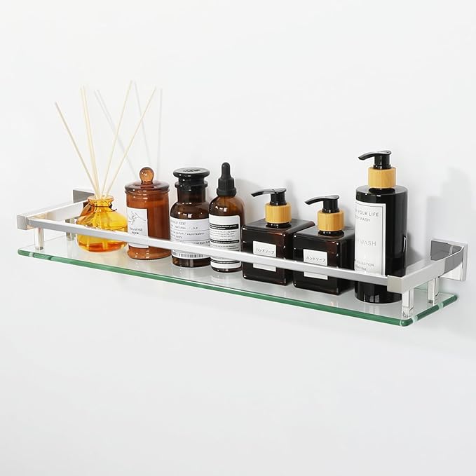 - VERSATILE INSTALLATION:These glass shelving is easy to install with included hardware, suitable for a variety of settings including bathrooms, kitchens, and living rooms