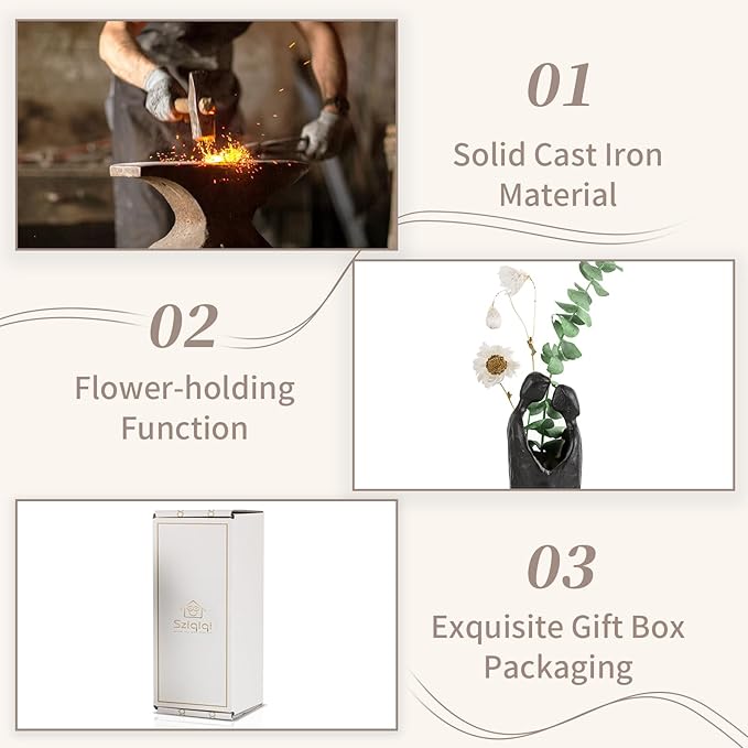 - HANDCRAFTED CAST IRON STATUE ORNAMENT - Our couple sculptures are meticulously crafted from iron material, ensuring a solid and sturdy building. The felt base also prevents any scratches on tabletop surfaces. Unlike most wedding anniversary gifts, it will be a practical and long-lasting gift for your loved one.