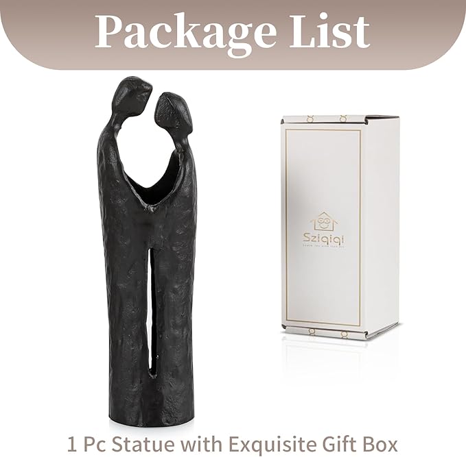Sziqiqi 6th Anniversary Wedding Gift: Iron Gifts for 6th Anniversary for Couple - Romantic Couple Statue Metal Love Sculpture Black Abstract Figurines for Home Decor Women Her Wife Girlfriend Him Men