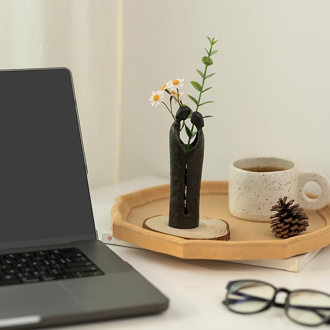 - AESTHETIC COUPLE SCULPTURE - This modern abstract sculpture captures the sweet moment of the couple, they are looking in eyes to enjoying tender moment together. You can insert some dried flowers and fake flowers to decorate the coulpe statue. It will adds a romantic flair to any industrial or farmhouse style decor, making it a versatile and charming addition to any home.