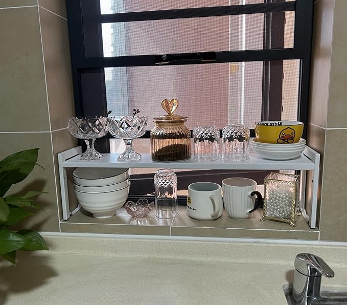 - Versatile Space-Saver: This expandable metal shelf organizer is perfect for maximizing small spaces like kitchen counters, desktops, or narrow cabinets. Adjust the length from 16-26 inches, width 5.1 inches, height 7.3 inches, with a maximum under - shelf height of 6.14 inches, this narrow shelf accommodates various storage needs