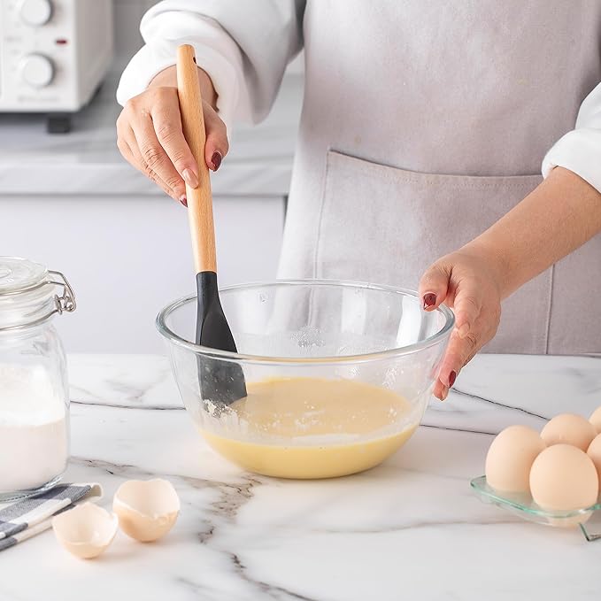 Country Kitchen Non Stick Silicone Utensil Set with Rounded Wood Handles for Cooking and Baking, 14 Piece Set, Black