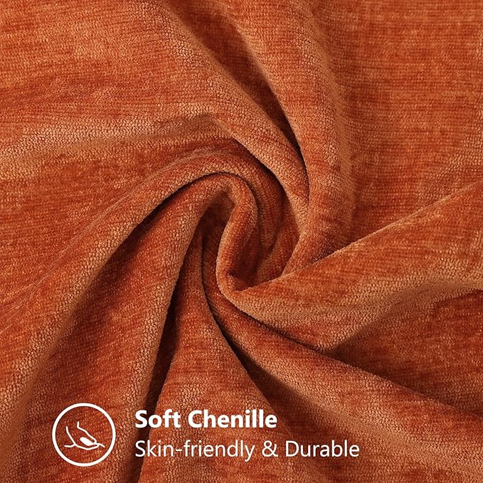 decorUhome Fall Chenille Soft Throw Pillow Covers 20x20 Set of 2, Farmhouse Velvet Neutral Decorative Euro Pillow Covers with Stitched Edge for Couch Sofa Bed Home Decor, Rust