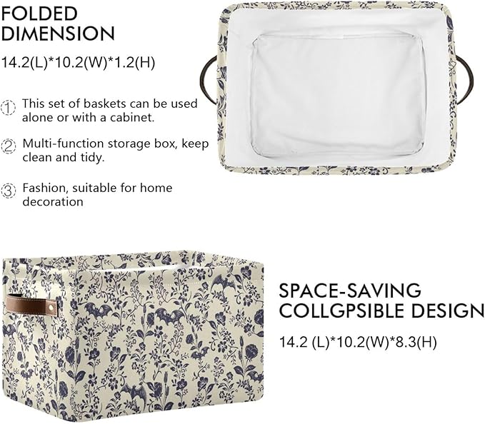 Storage Basket Bin Goth Bats Organizer Collapsible Shelf Basket Cube with Handle for Nursery Bedroom Bathroom