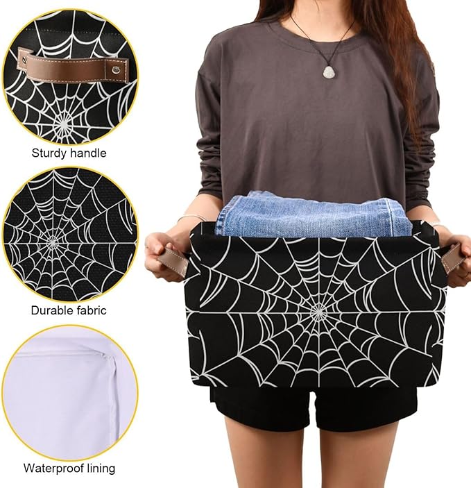 - Storage Basket Cube Material: Canvas exterior, PE waterproof coated white lining fabric, pu leather handles. Sturdy leather handle make it easy to carry or pull off and out of shelves.