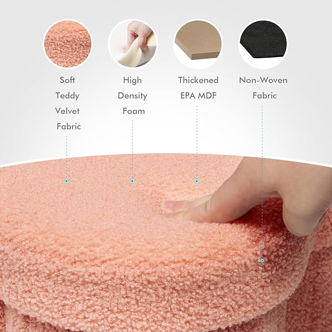 - 【Sturdy & Durable】The stool body wrapped in Top-quality Faux lamb fleece offers ultimate soft and comfort. The medium density fiberboard used in this ottoman is made from FSC certified wood. 12.6 inches is an ergonomically comfortable height for most people.