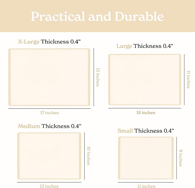 - 4-Pack with Holder: This cutting board set includes small, medium, and large cutting board sizes for every prep need. It also comes with a compact holder that neatly organizes all boards vertically, keeping your countertops clutter-free while ready for any chopping task.