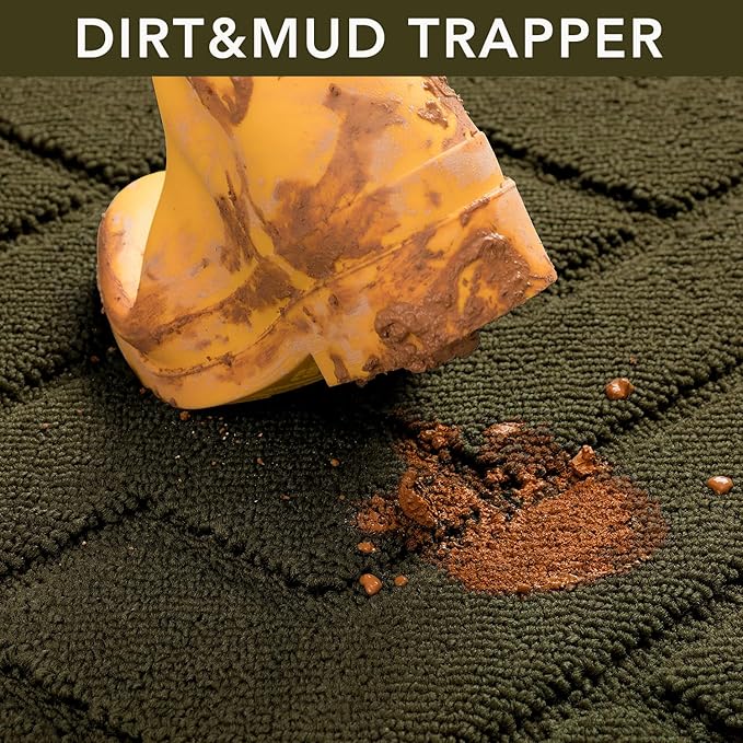 hicorfe Front Door Mat Outside Entrance,24"x35" Absorbent Muddy Dirt Resist Welcome Door Mats Outdoor Indoor,Stain and Fade Resistant,Non Slip Backing Entry Mat Doormat for Entryway (Oliver Green)