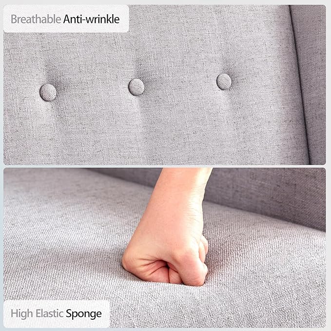 HUIMO Accent Chair Living Room Chair, Upholstered Button Tufted Armchair, Linen Fabric Sofa Chairs for Bedroom, Living Room, Mid Century Modern Comfy Reading Chair (Light Grey)