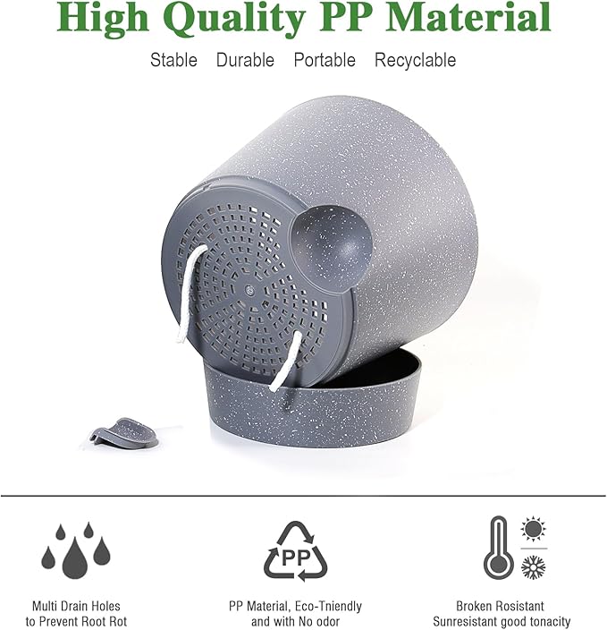 - Modern Matte Look and Detachable: This pot dosn't have the garish look of a plastic pot but possesses all the benefits of a plastic pot.It's easy to assemble and light weight. Its base is a removable deep drain tray,you can watering from the bottom for healthy roots. Light weight feature allows you can put them on a shelf without worrying about extra weight from the pot.