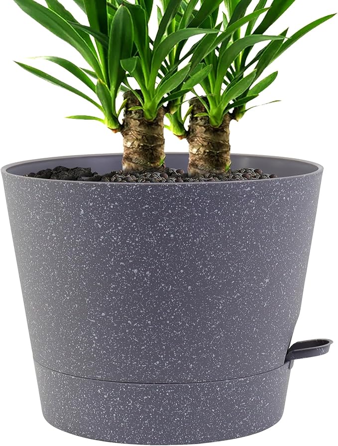 Self Watering Pots for Indoor Plants,12 inch Planters with Drainage Holes Plastic Flower Pots with Deep Reservoir, Grey Speckles