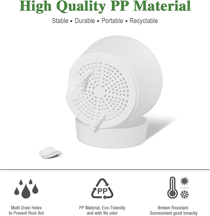 - Modern Matte Look and Detachable: This pot dosn't have the garish look of a plastic pot but possesses all the benefits of a plastic pot.It's easy to assemble and light weight. Its base is a removable deep drain tray,you can watering from the bottom for healthy roots. Light weight feature allows you can put them on a shelf without worrying about extra weight from the pot.