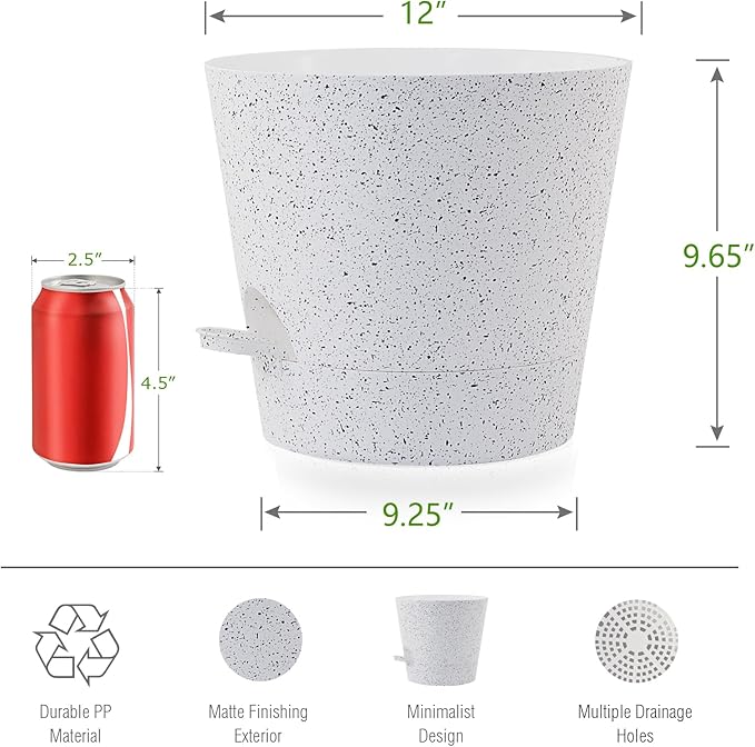 Self Watering Pots for Indoor Plants,12 inch Planters with Drainage Holes Plastic Flower Pots with Deep Reservoir, White Speckles