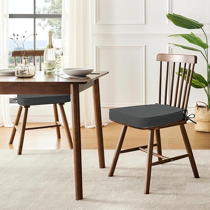 downluxe Chair Cushions for Dining Chairs, Waterproof Kitchen Chair Pads, Non-Slip Dining Seat Cushion with Ties, 17" x 16" x 2.5", Dark Grey, 4 Pack