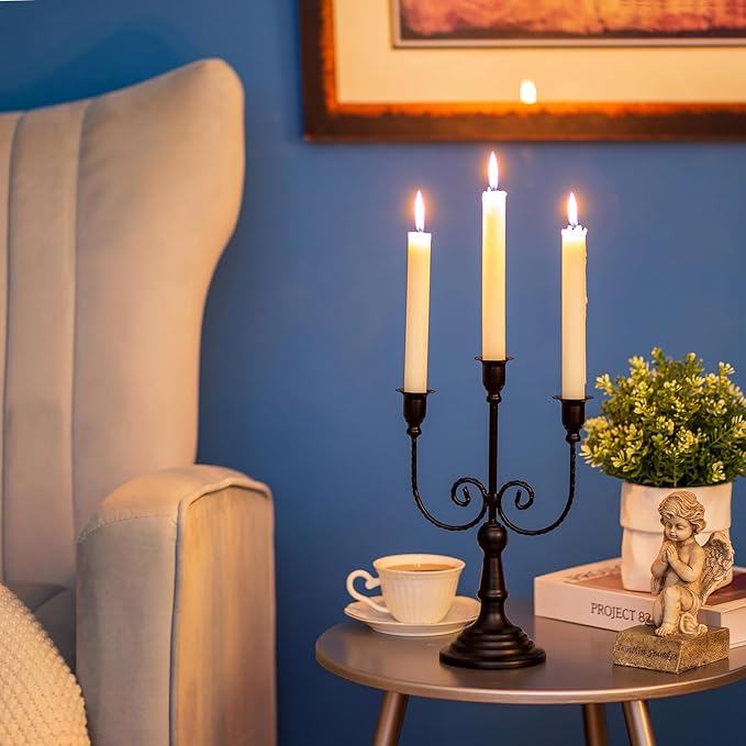 Sziqiqi Candle Holders 3-Arms Candelabra - Black Halloween Candelabras Metal Candleholder Stands Decoration for Thanksgiving Christmas