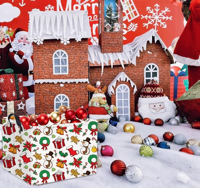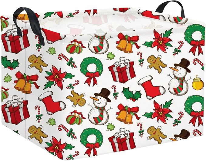 - MATERIAL:The christmas basket is made of durable canvas &The inner lining is made of waterproof fabric; sturdy metal rod frame around the top keep the basket shape.