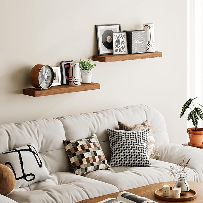 BAMEOS 24x6 Wall Shelf, 2-Shelf Modern Oak Floating Shelf Set for Bedroom, Bathroom, Kitchen Storage